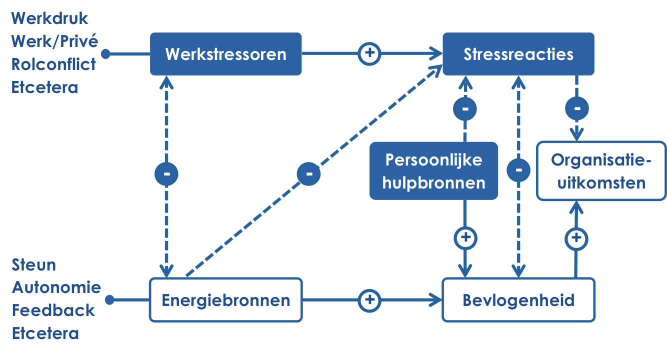 Het Job Demands – Resources (JD-R) Model is een wetenschappelijk getest model dat ervan uit gaat dat iedere medewerker wordt geconfronteerd met werkeisen die energie vreten (‘‘job demands’’ of ook “stressoren”) maar ook met motivatoren die energie geven (‘‘resources’’ of ook “energiebronnen”).